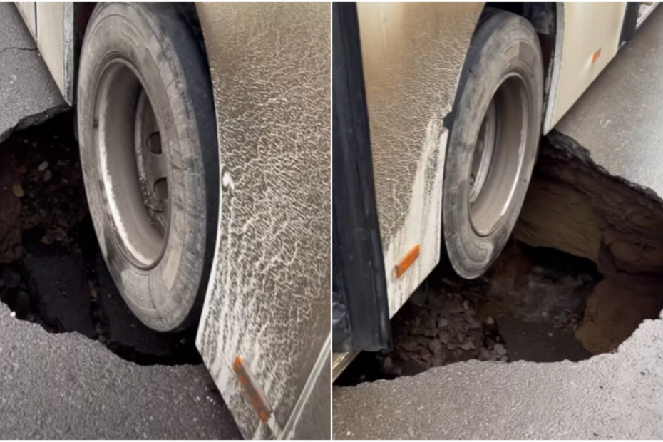 Un incident grav a avut loc pe o stradă din municipiul Brăila, unde o groapă uriașă a apărut în asfalt, iar roțile din spate ale unui autobuz plin cu pasageri au căzut în interior.